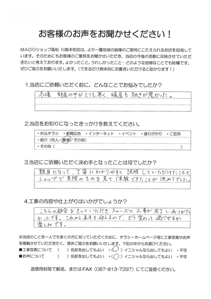 冬場のご自宅の寒さに大変お困りで、内窓や断熱リフォームについてご相談をいただきました。