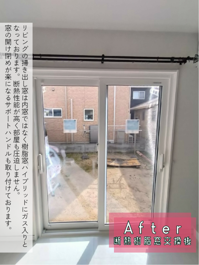 樹脂窓ハイブリット ガス入りで高い断熱性能を持つ窓へ。サポートハンドルで開け閉め楽々♬