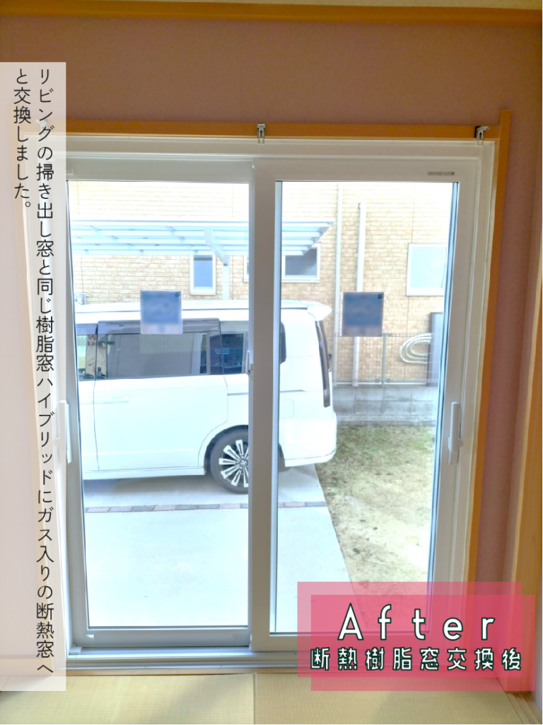 内窓ではなく断熱性能の高いマドリモ樹脂窓ハイブリッドでガス入りを施工しました。