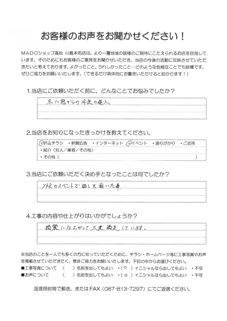 1階のリフォーム後のご依頼でしたので、内窓の断熱効果をご納得いただいたのだと感じスタッフ一同大変うれしく思います(^^♪
