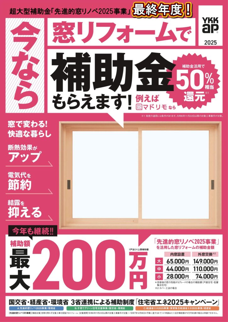 最大200万円の補助金事業【先進的窓リノベ2025事業】はラストスパートです!!