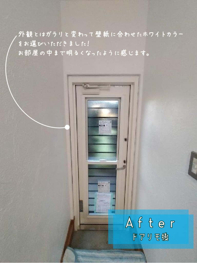 勝手口ドアは以前より害虫の侵入に悩まされていらっしゃったとのことで、外壁を壊さず施工できるカバー工法でドアリモを行いました。