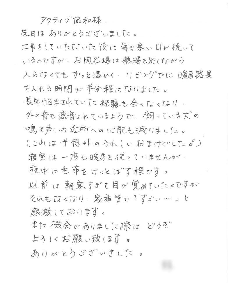 リフォーム後はお客様アンケートでのご感想に加え、さらに心温まるお手紙までいただきました( *´艸`)