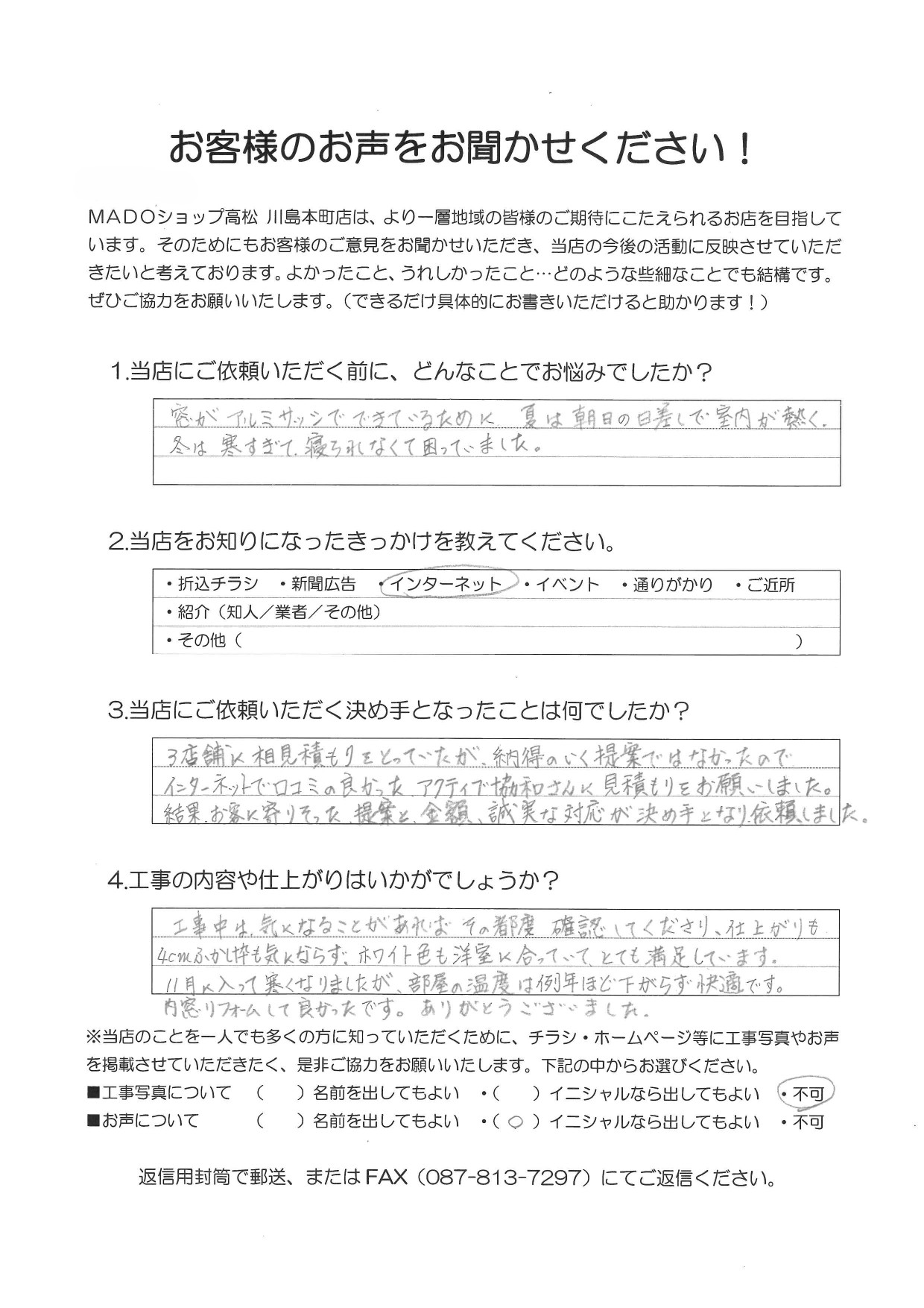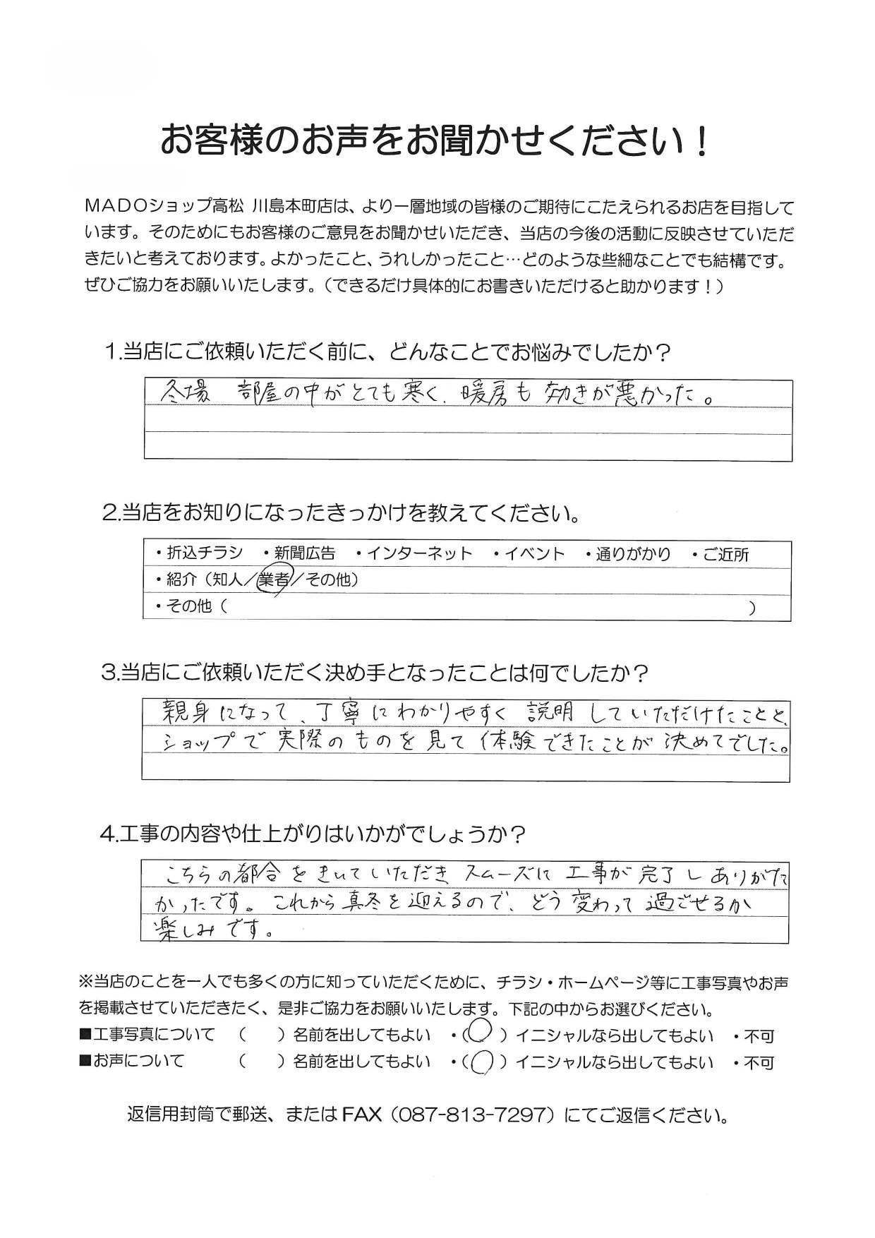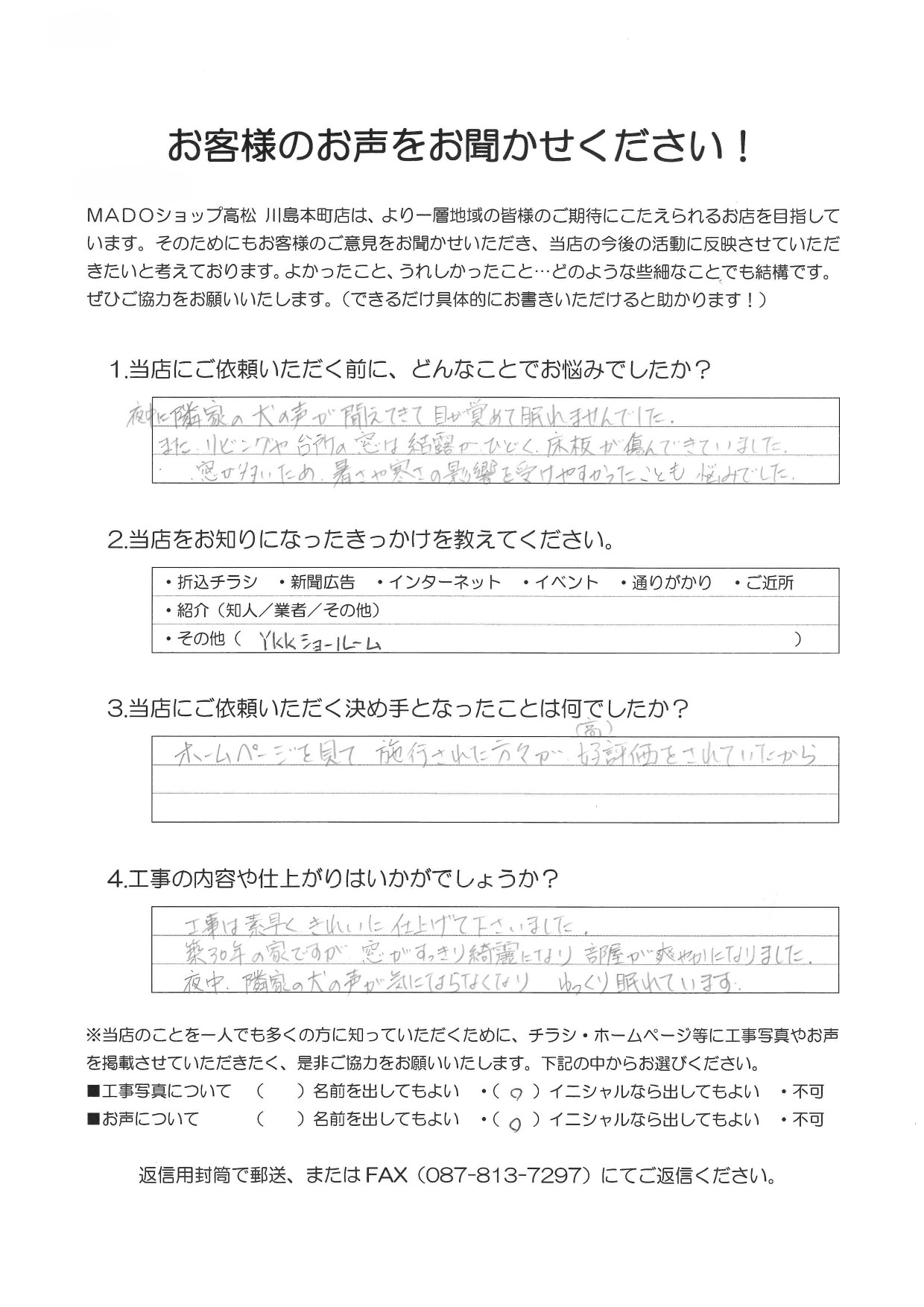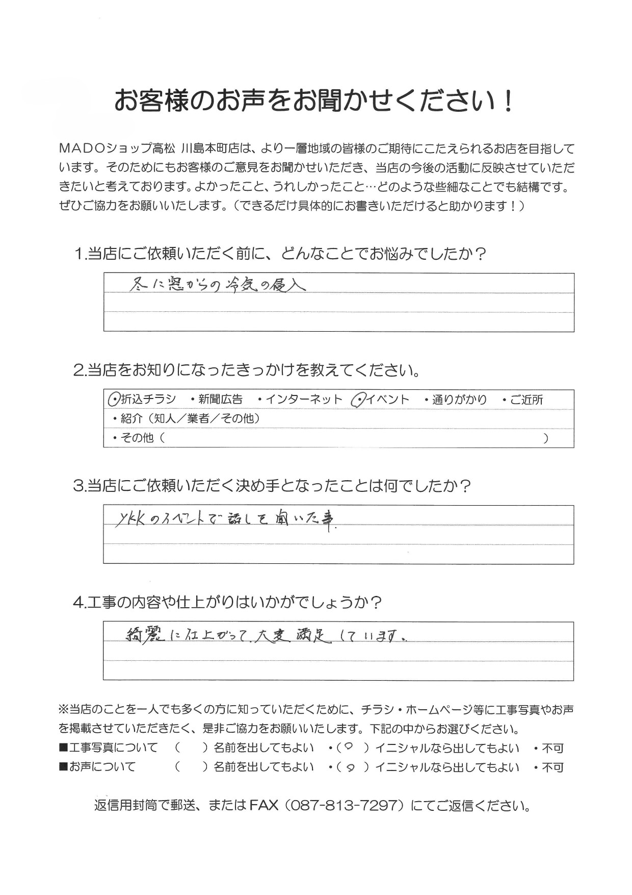 お客様の声 Voice アクティブ協和 | 香川県高松市 > お客様の声 お客さまの声の一部をご紹介いたします。(サムネイル画像クリックで拡大表示します) エクステリア・ガーデン 玄関ドア・窓リフォーム
